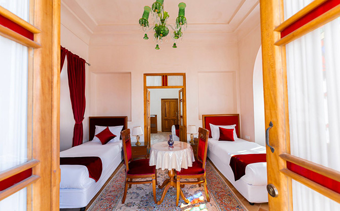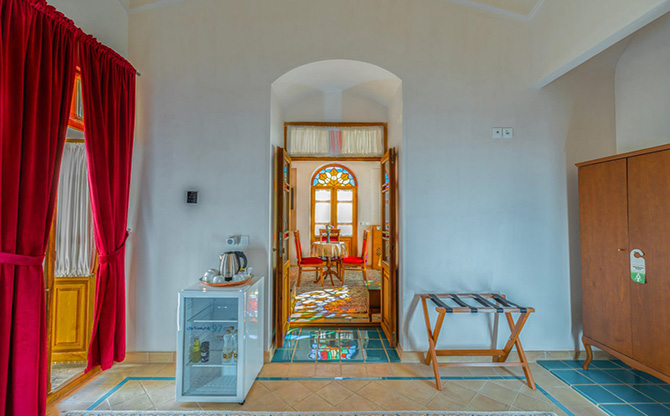 اتاق 114(سوییت خانواده)دبل+تویین 2 خوابه ایوان شاه نشین 7 پله رو به بالا ویو به حیات اصلی و 2 حیاط فرعی